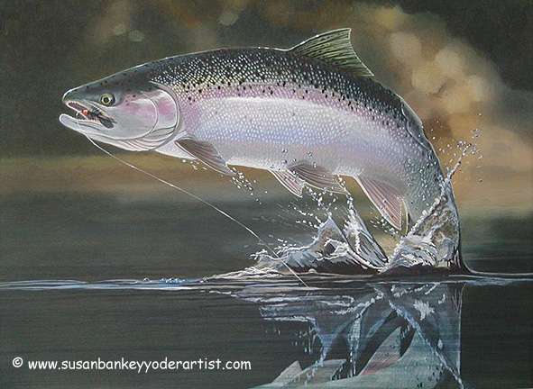 This painting of a Steelhead caught on an egg sucking leech fly,